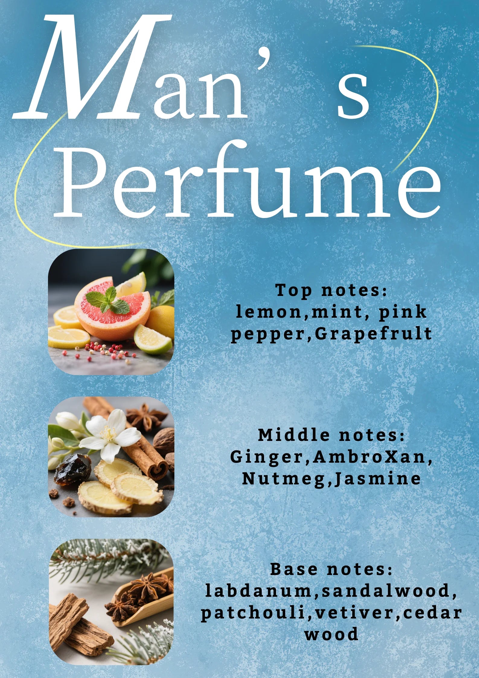 Base notes: vetiver,Tonka Bean,Amber